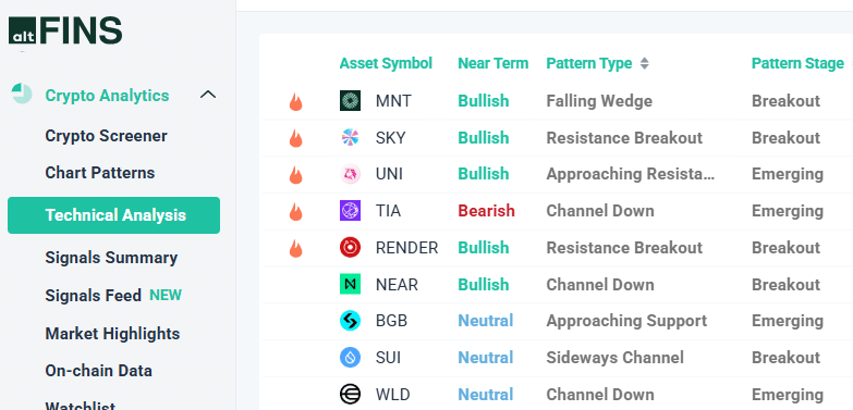 It’ls been in an Uptrend (per altFINS trend ratings - see others in Uptrend). Price broke out of a Sideways Channel, signaling resumption of Uptrend. It’s up 20% since then, surpassing our initial price target of $0.08.