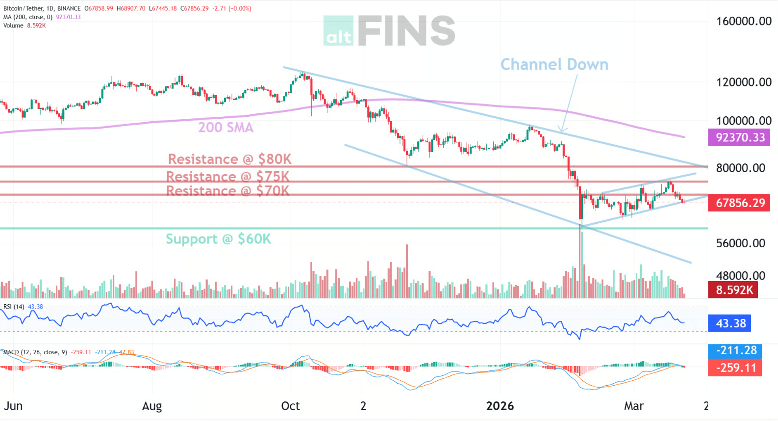 Support and Resistance: Nearest Support Zone is $60,000.00.